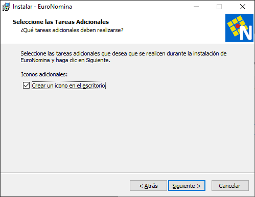 El instalador le propondrá crear un acceso directo en el escritorio. Si no lo desea, desmarque la casilla
