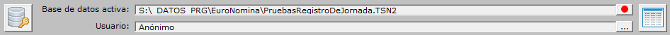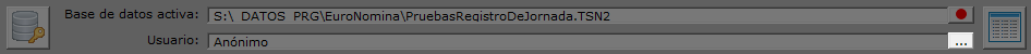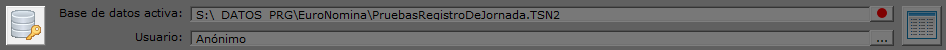 La parte central del elemento de la pantalla que estamos comentando muestra la base de datos activa (si existe) y el nombre del usuario con el