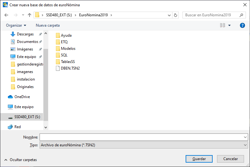 La ventana mostrada es un cuadro de diálogo estándar de Windows; solo deberá seleccionar la carpeta deseada y proporcionar un nombre para la