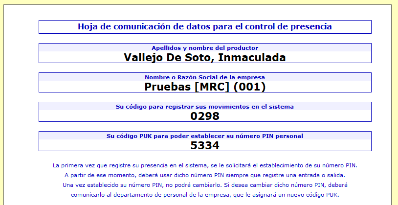El trabajador deberá, la primera vez que use el sistema, introducir su código y el