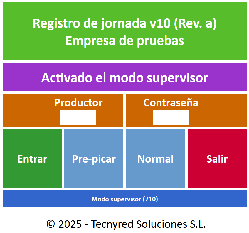 Mientras la aplicación está en modo supervidor, se pueden registrar picadas usando un PIN genérico, conocido solo por el supervisor. Estos movimientos, en caso de realizarse,